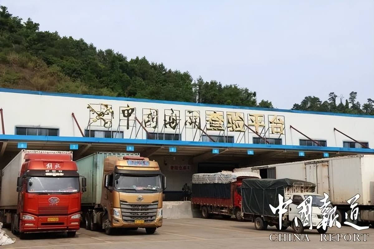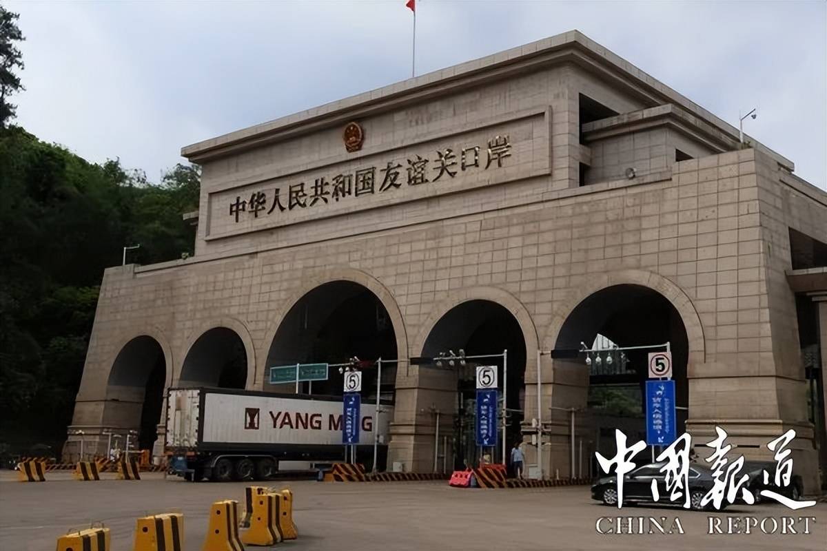 贸易车进入友谊关出入境口岸中国报道记者摄