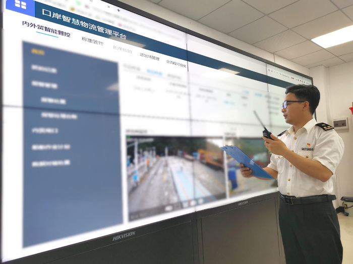 广州海关所属肇庆海关关员通过“口岸智慧物流管理平台”实时了解口岸货物物流状态“集拼智管”是广州海关所属南沙海关针对集拼进口货物推出的物流创新改革。在传统进口模式下,集拼货物集装箱需要等待所有货物完成申报、查验、放行等手续后方可拆柜提离,对于一些无需查验的货物而言,需要花费额外的时间。新模式下,同一集装箱装载货物在申报前即可全部入仓,每票货物可独立完成通关手续并及时提离,互不干扰,有效压缩集拼货物在港时间,提升企业通关获得感。