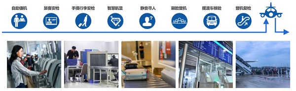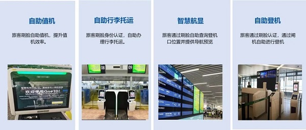 依靠身份核验技术为旅客提供全流程无纸化通关服务需将新技术与机场运行模式、服务模式、管理模式等深度融合,覆盖自助值机、自助行李托运、自助安检、智慧航显、自助登机等各个环节,通过全方位创新驱动机场的智慧化运营与管理。在旅客通行的各个环节中,集成了旷视智能软硬件产品,帮助旅客实现无纸化一脸通行。